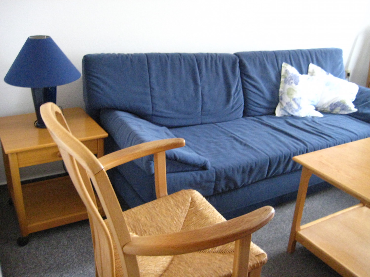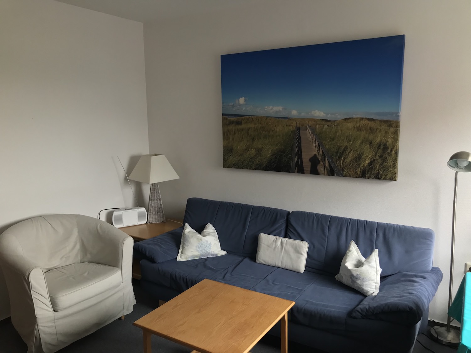 Die Wohnung No.6 liegt im 1. Stock. Sie betreten die Wohnung und befinden sich in der Wohnküche mit Esstisch vor dem Fenster und Blick auf das Wattenmeer und den Hafen, 2 Korbstühle, Teppich und Sofa. Die Küchenzeile mit Dunstabzug und 2 Plattenherd ist im Durchgangszimmer zwischen Wohnraum und Schlafzimmer. Hier steht ein Doppelbett Radiowecker, Nachtschränke und Kleiderschrank.