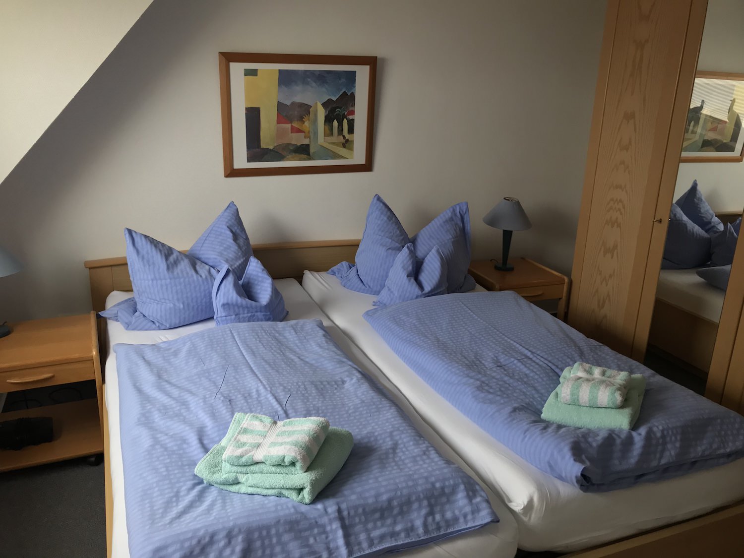Von hier aus erreichen Sie dann das geflieste Bad mit Dusche und WC, ohne Fenster, daher mit Abzug. Zur Ausstattung gehören zusätzlich Sat-TV, Telefon (kostenfreie Flatrate ins Festnetz), ein Radio und ein kostenfreier WLAN-Zugang. Handtücher, Tisch- und Bettwäsche sind ebenfalls vorhanden.Außerdem verfügt die Wohnung No. 6 über einen Blick auf den Hafen.