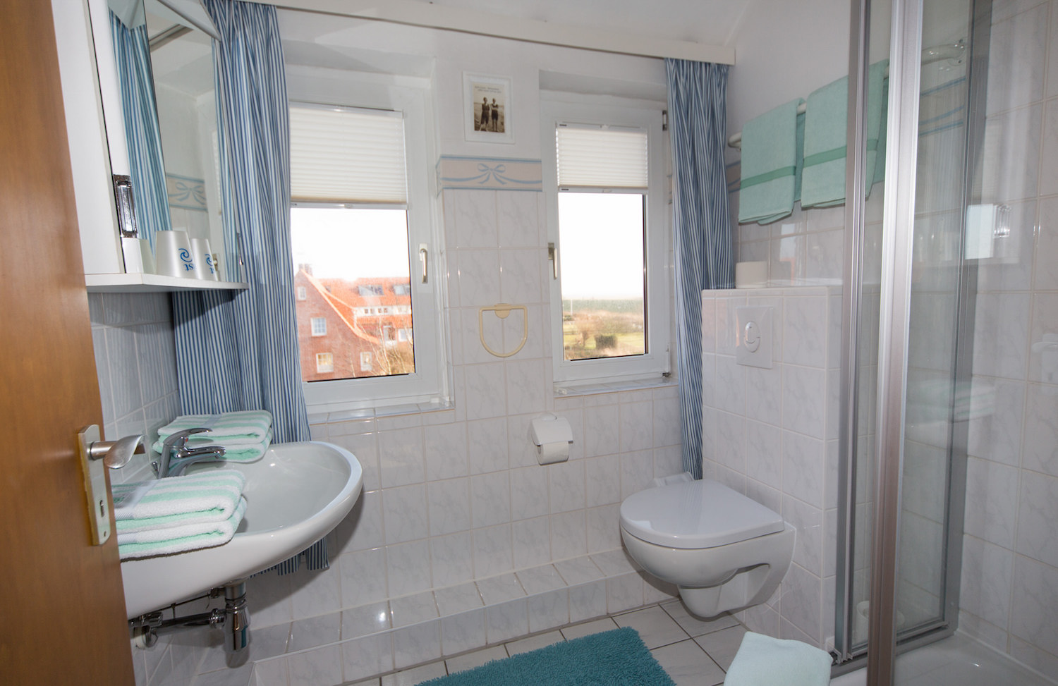 Vom Wohnzimmer aus können Sie den Blick auf das Wattenmeer genießen. Zur Ausstattung gehören zusätzlich Sat-TV, Telefon (kostenfreie Flatrate ins Festnetz), ein Radio und ein kostenfreier WLAN-Zugang. Handtücher, Tisch- und Bettwäsche sind ebenfalls vorhanden.